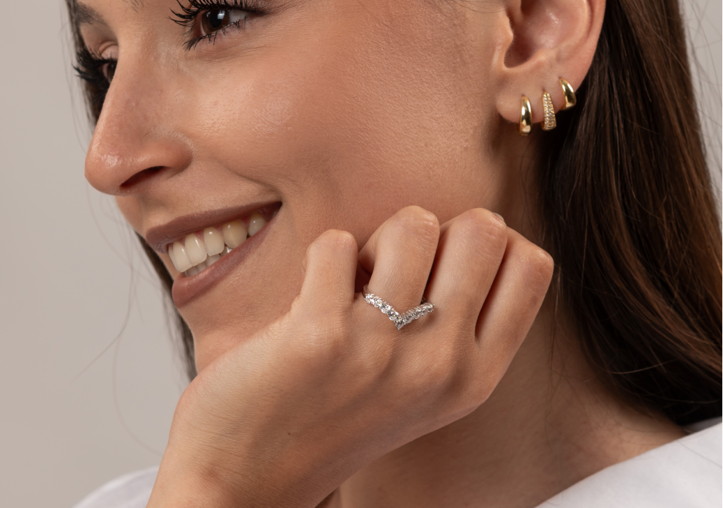 Eleganza, unicità e qualità sono ciò che distinguono gli anelli in argento Sterling della collezione, resi luminosi dalle pietre zirconie o moissanite incastonate.