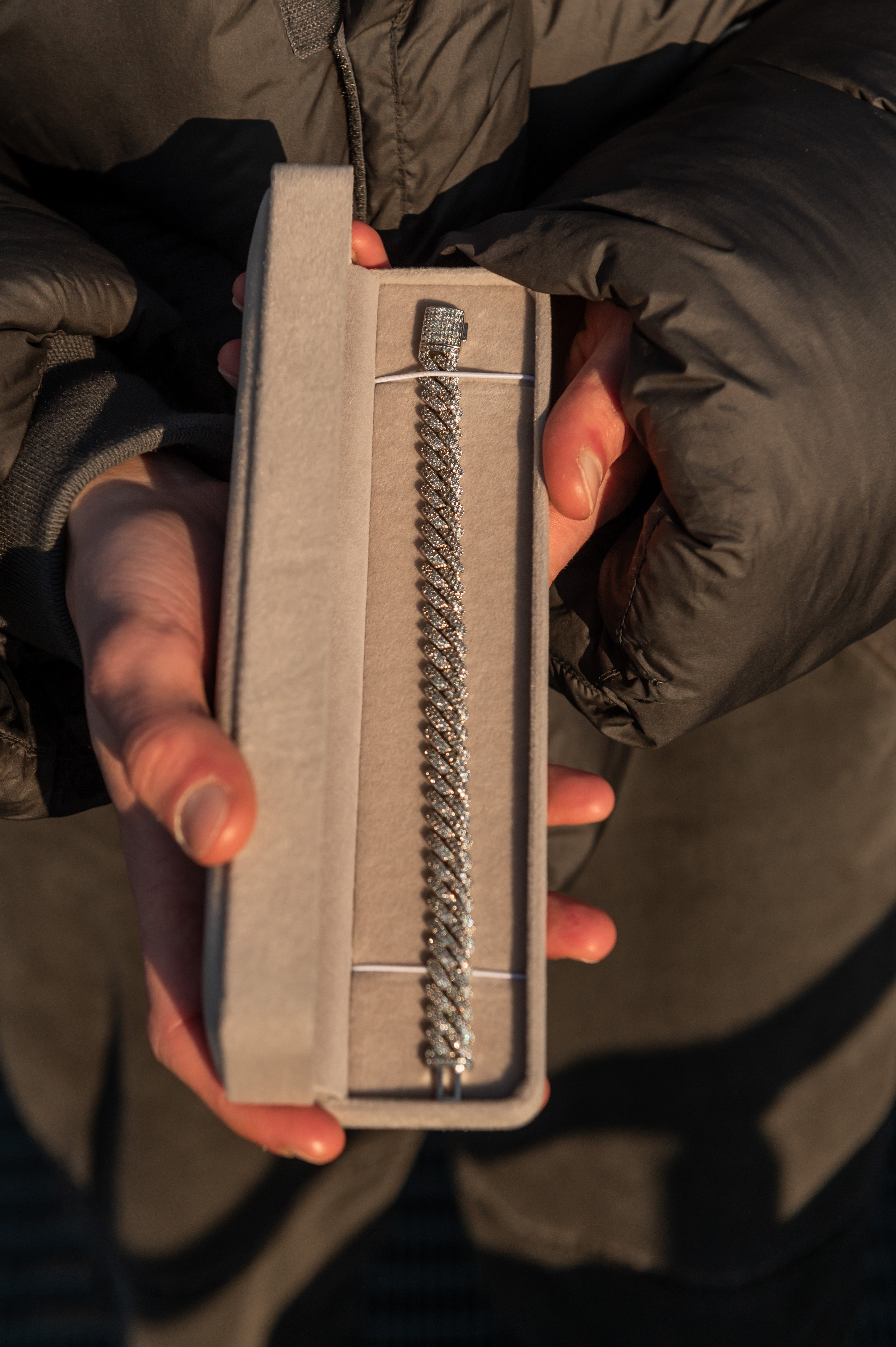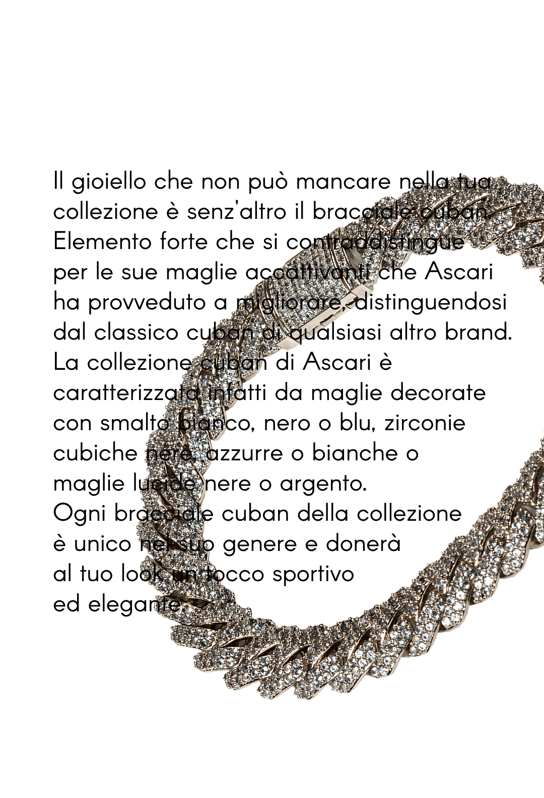 Wenn die kubanische Halskette bereits ein starkes Element Ihrer Sammlung ist, verstärkt die kubanische Ice Blue Silver ihre Kostbarkeit. Diese vollständig aus Edelstahl gefertigte kubanische Halskette hat eine Pavé-Oberfläche mit blauen Zirkonia-Steinen, was sie zu einem einzigartigen Stück macht.