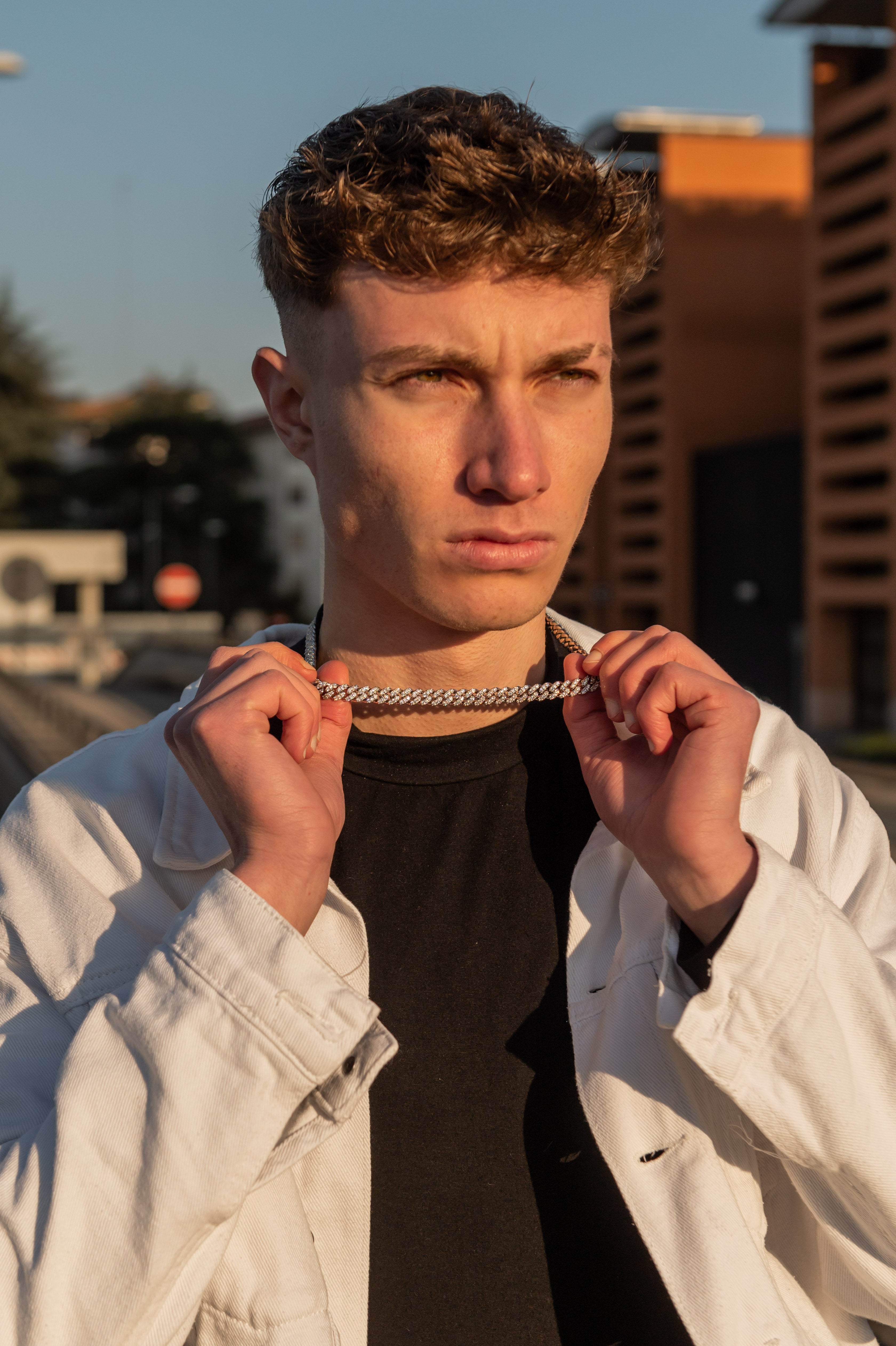 Die Besonderheit der Ice Cuban White Silver Halskette ist neben der Fertigung aus rostfreiem Stahl die Pavé-Verarbeitung ihrer Oberfläche. Jedes Glied, einschließlich des versteckten Verschlusses, ist mit Zirkonia-Steinen besetzt, was die Halskette zu einem Unikat macht.