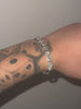 Un bracciale realizzato con pietre zirconie cubiche di grado 5A trasparenti incastonate su una montatura in acciaio inossidabile 316L progettata e realizzata appositamente in modo che una volta indossato esso non giri su se stesso mostrando da qualsiasi posizione la lucentezza delle proprie pietre.