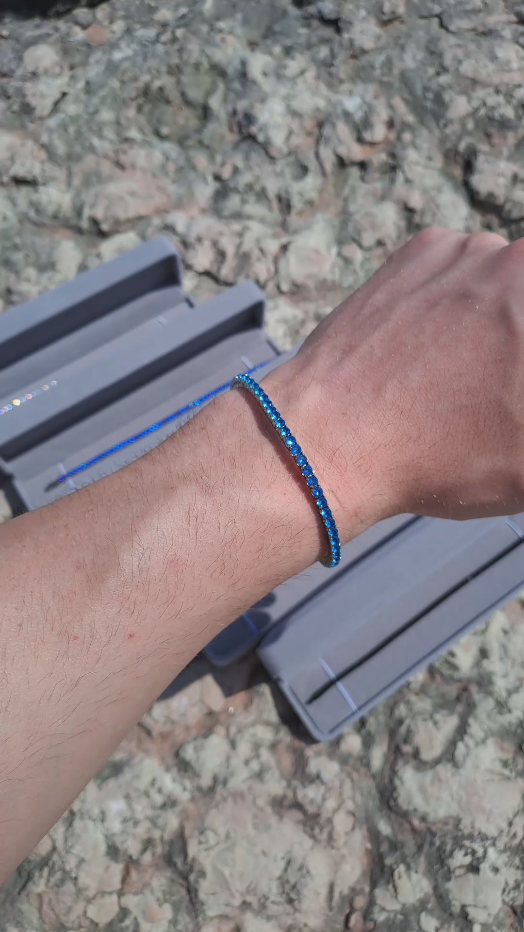 Ispirato all'azzurro del mare questo bracciale ne richiama l'eleganza con un fascino che lo rende unico. Nella classicità del bracciale tennis Ascari Gioielli™ ha realizzato un bracciale con montatura in acciaio inossidabile 316L impreziosito dalle pietre zirconie cubiche di grado 5A di colorazione azzurra.