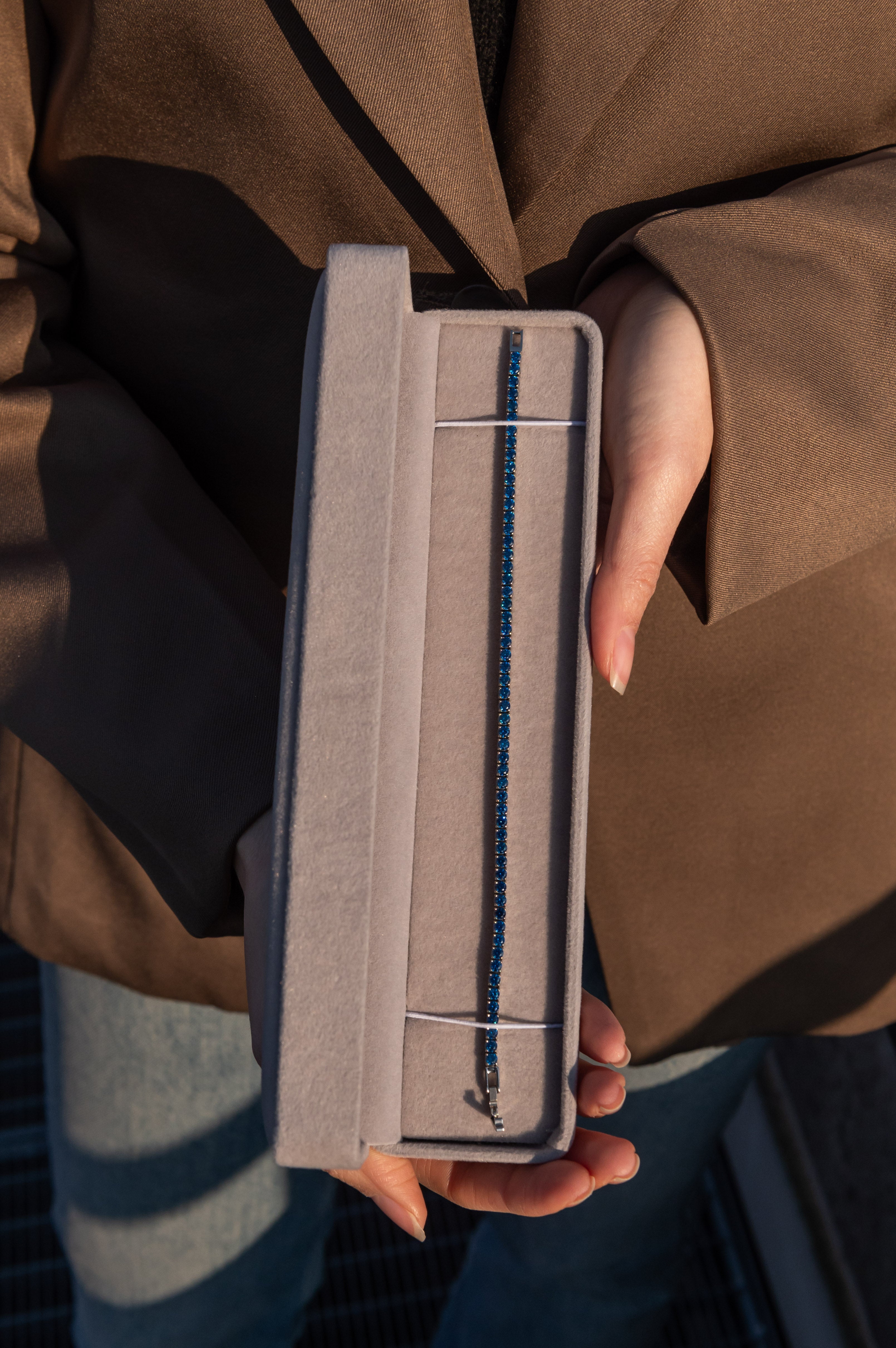 Indossando questo bracciale al polso e guardando all'interno delle pietre zirconie cubiche di grado 5A di colore blu intenso potrai provare cosa significhi stare nelle profondità marine.