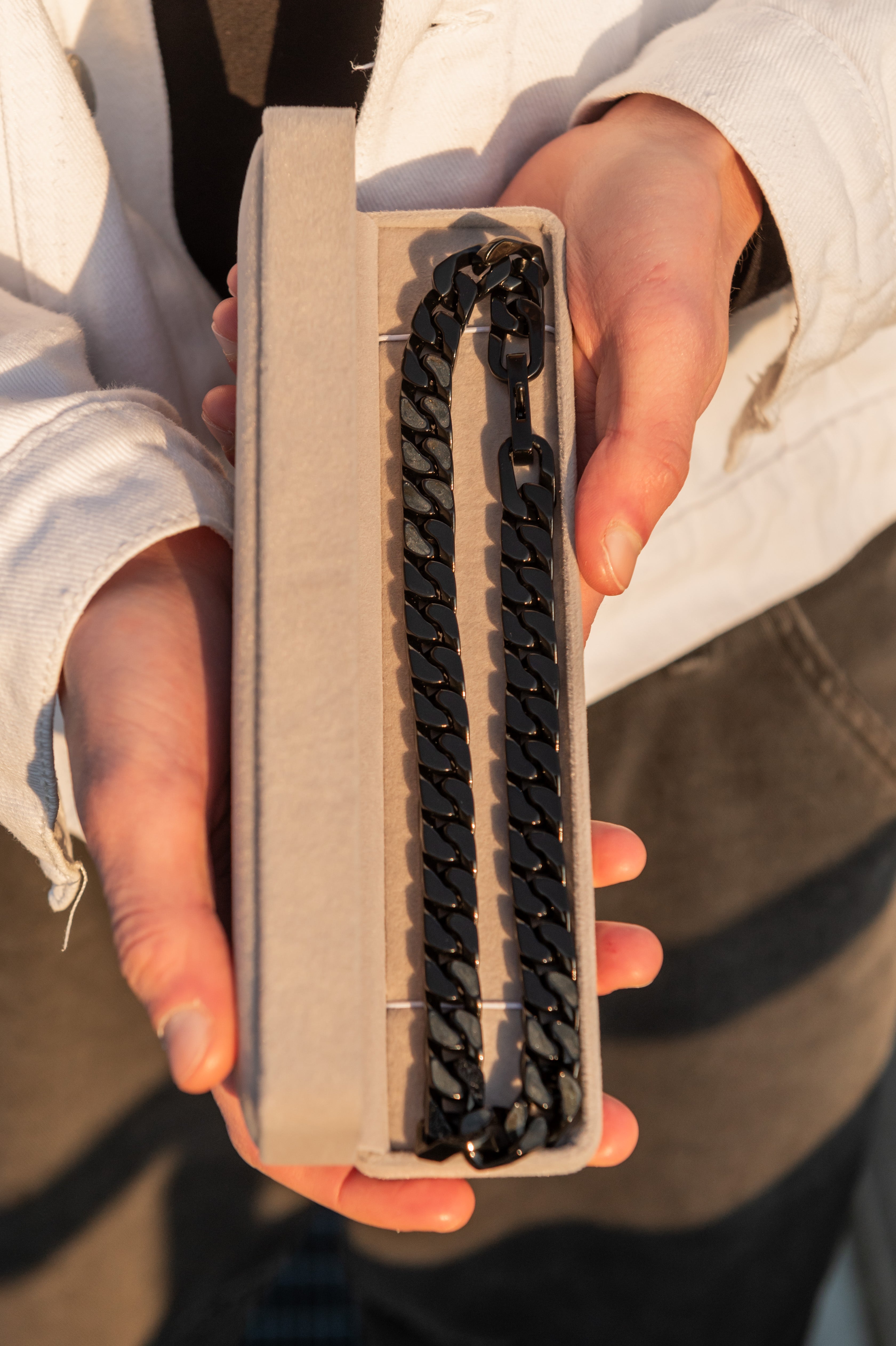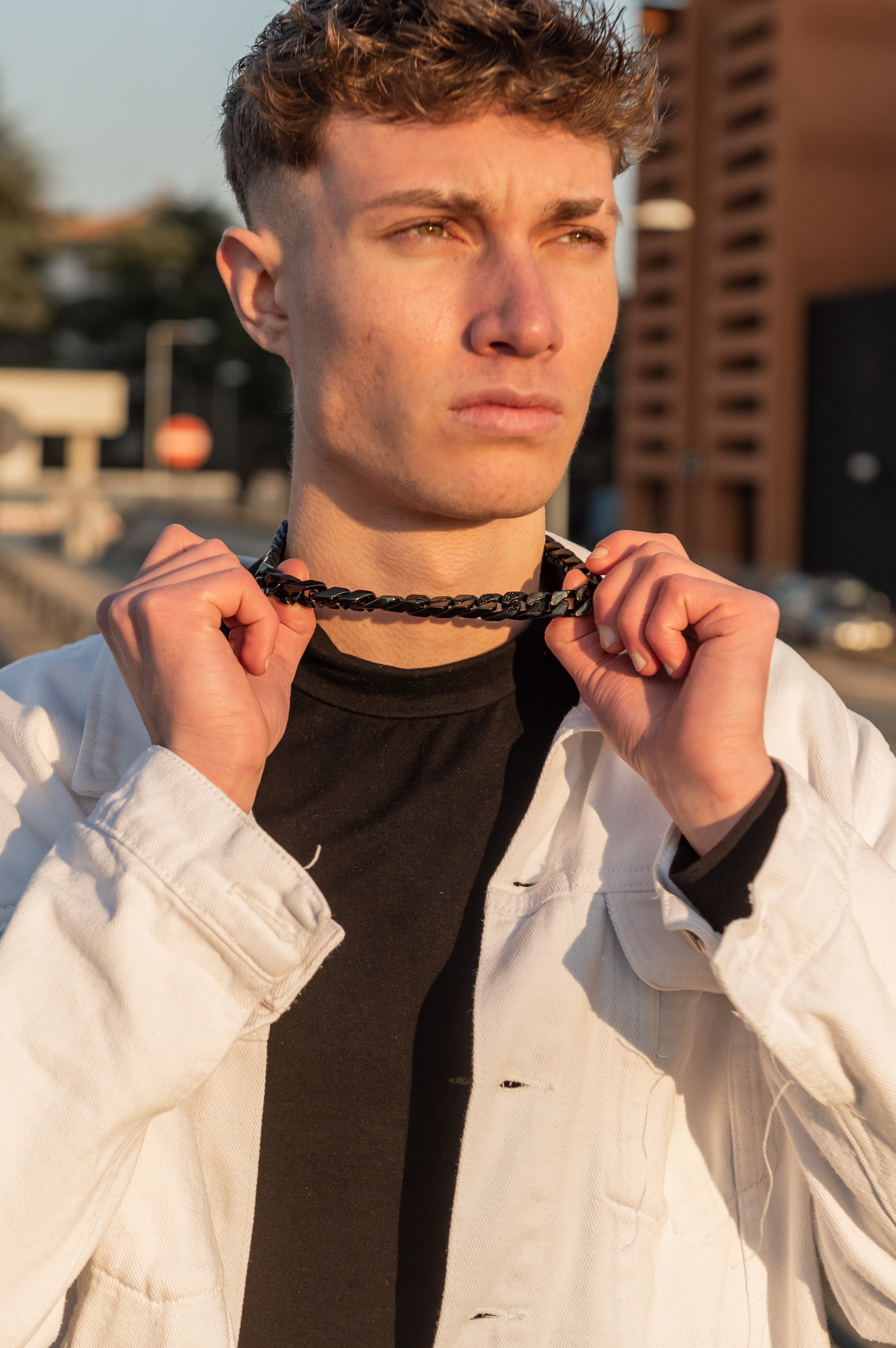 In ogni collezione da uomo è presente un elemento forte come la collana cuban. La collana cuban black di Ascari, realizzata interamente in acciaio inossidabile, compresa la chiusura a scomparsa, aggiunge particolarità grazie alla colorazione nera ottenuta grazie alla colorazione tramite in PVD.