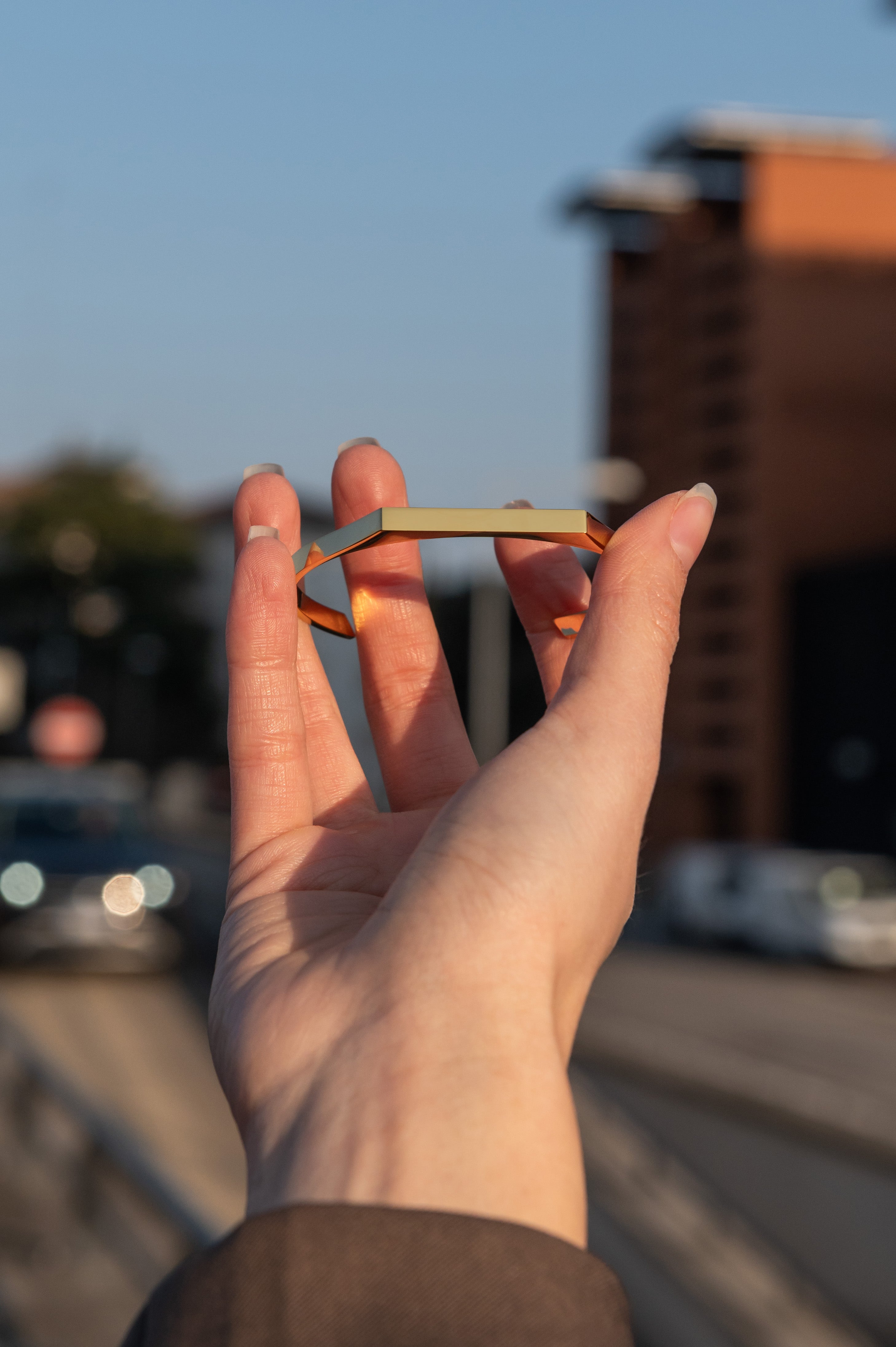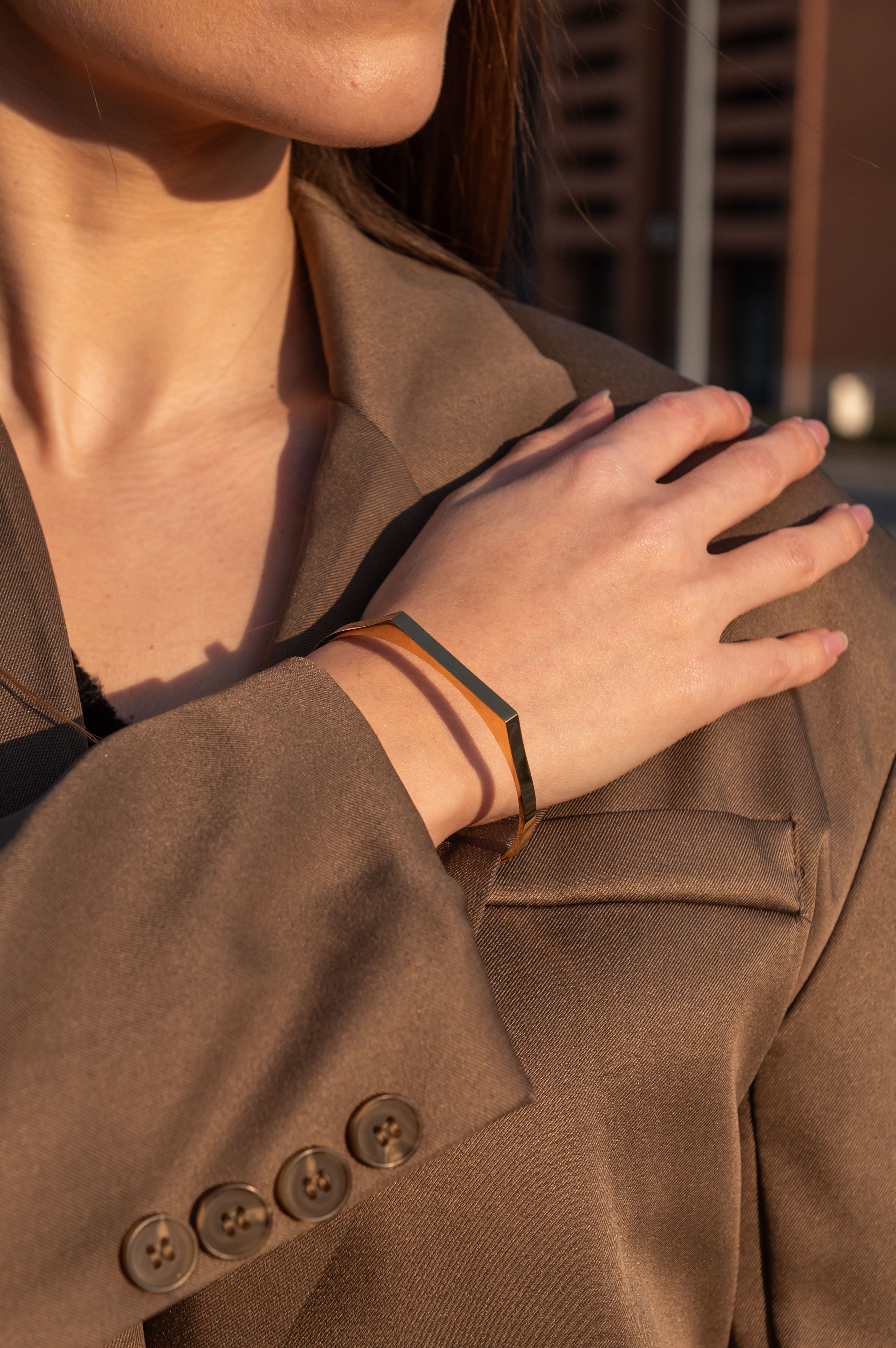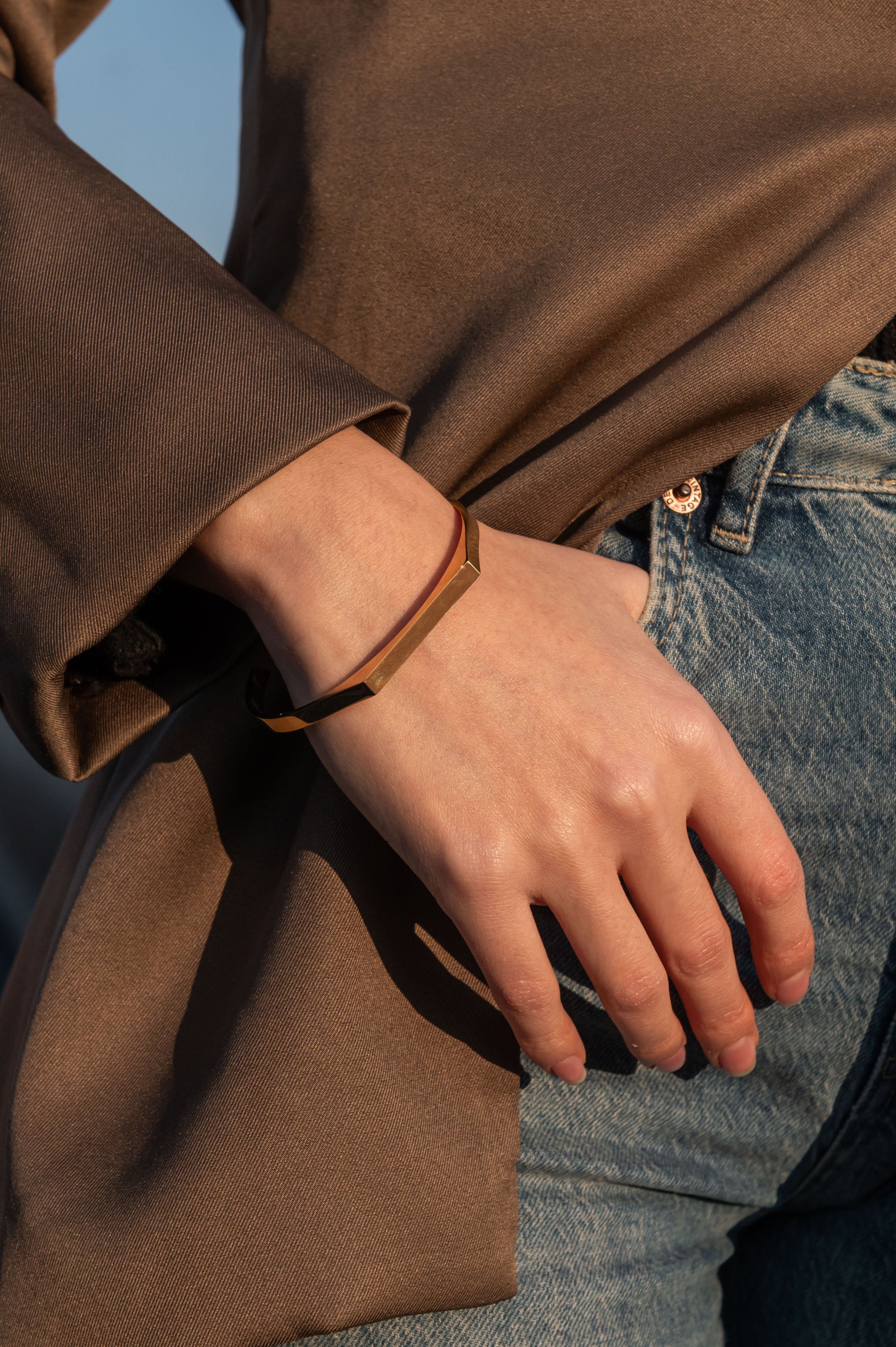 Il bracciale signet cuff oro è la rivisitazione del classico cuff polsato, lo caratterizza la sporgenza piatta che lo rende distintivo mantenendo i suoi tratti eleganti ed al contempo sportivi.